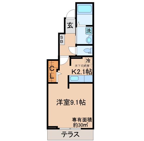 | 間取り | 1K (洋室 9.1帖 K 2.1帖 ) | ||||||||