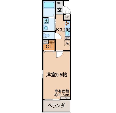 | 間取り | 1K (洋室 9.5帖 K 3.2帖 ) | ||||||||