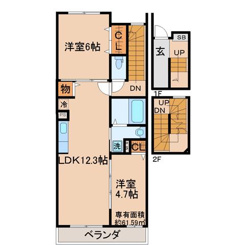 | 間取り | 2LDK (LDK 12.3帖 洋室 6帖 洋室 4.7帖 ) | ||||||||